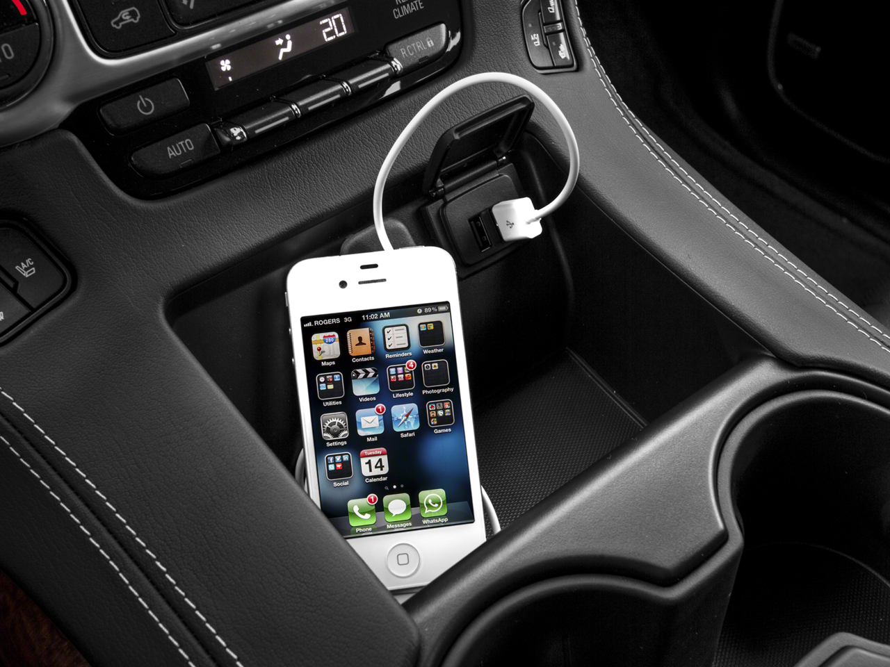 - Audio system, 8" diagonal Color Touch screen with IntelliLink AM/FM/SiriusXM with USB ports and auxiliary jack with seek-and-scan and digital clock, includes Bluetooth streaming audio for music and select phones; voice-activated technology for radio and phone; and Shop with the ability to browse, select and install apps to your vehicle. You can customize your content with audio, weather and more. Featuring Apple CarPlay and Android Auto capability for compatible phone; 5 USB ports and 1 auxiliary jack